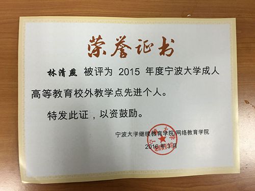 寧波大學成人高等教育2015工作會議于2016年03月18日在寧波大學繼續教育學院本部召開,會議由寧波大學繼續教育與培訓處處長馬敬峰主持,寧波大學繼續教育學院院長王存寬做了重要講話,回顧2015,展望2016。寧波大學財務處副處長翁光聰做了寧波大學財務規范解讀。我校執行校長彭佳志獲得寧波大學成人高等教育特別貢獻獎,我校林清燕和史仁娜兩位老師被評為2015年度先進個人。