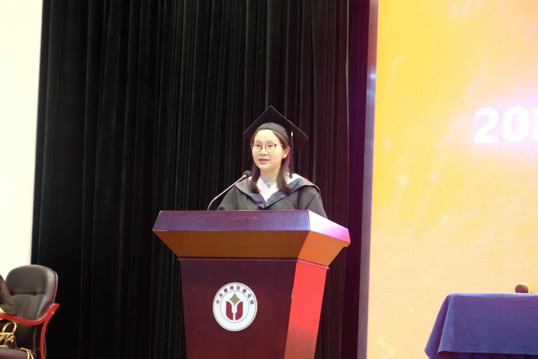 宁波大学继续教育学院2019专升本小学教育班的蒋雯燕同学代表2021届全体毕业生上台发言。