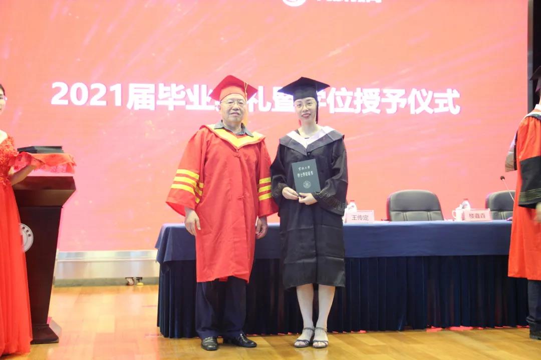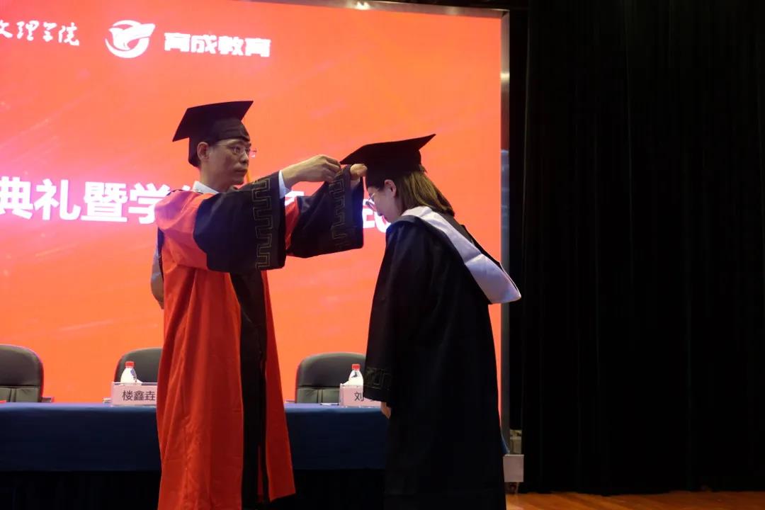 激情澎湃的发言,得到在场同学和老师的一致好评。 宁波大学继续教育学院副院长楼鑫垚为每位获得学位同学进行拨穗;育成教育校长王传定为每位学位获得者颁发学位证书。