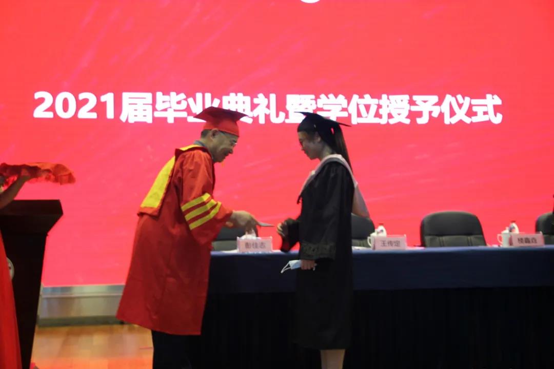 主席台上各位领导为2021届优秀毕业生(优秀学生干部)颁发荣誉证书;为2021届毕业生代表颁发毕业文凭。
